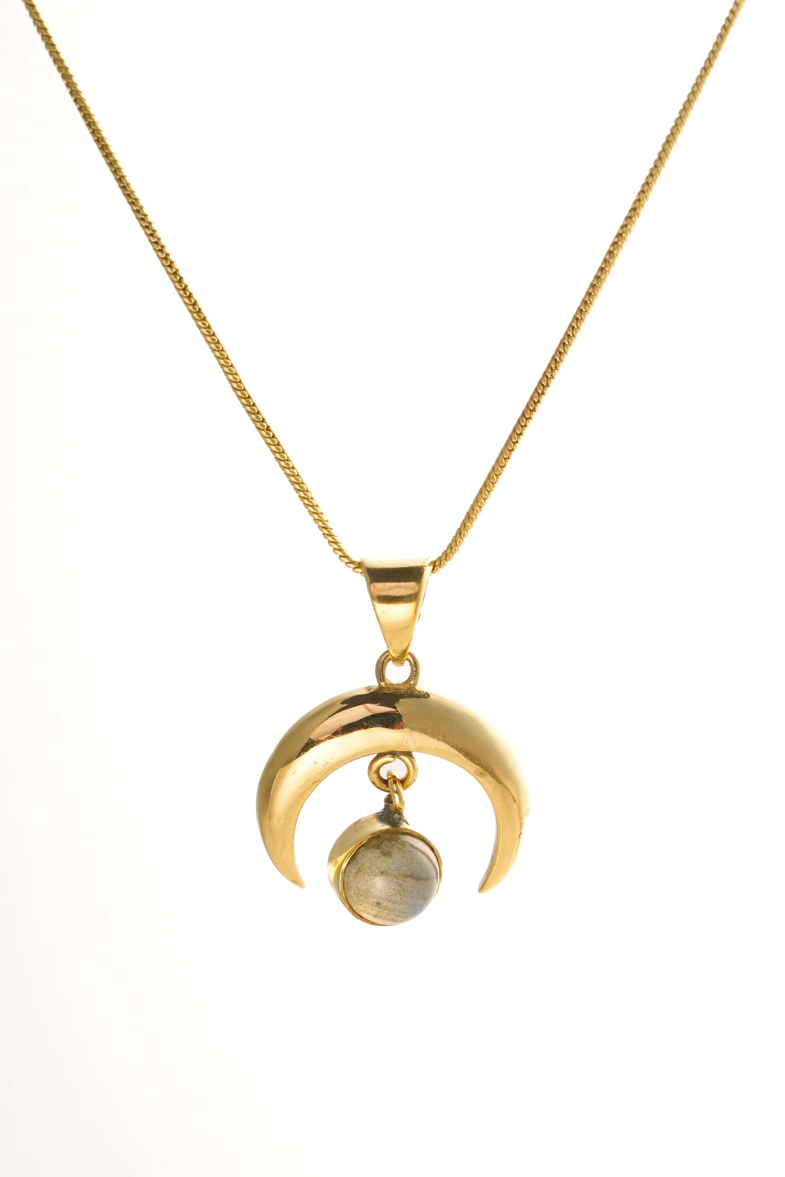 Prachtige messing hanger in de vorm van een halve maan met een bungelende edelsteen