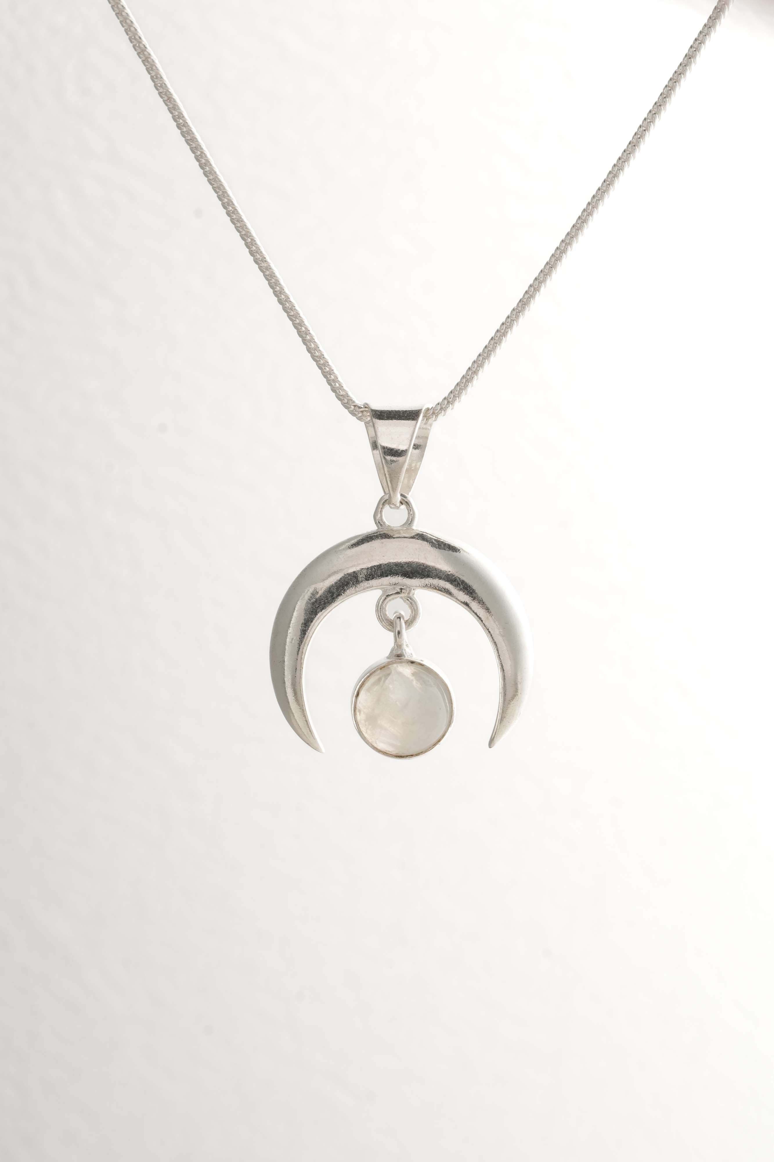 Prachtige verzilverde messing hanger in de vorm van een halve maan met een bungelende edelsteen