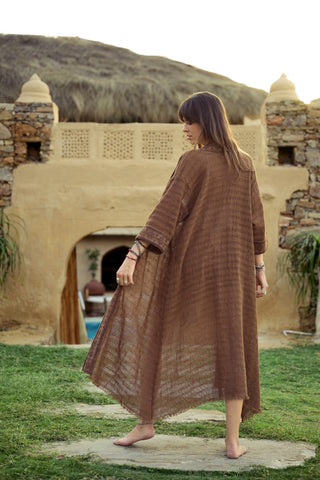 De Luna Patch Rok is een prachtig vervaardigd stuk, ontworpen voor vrije geesten die houden van een moeiteloze stijl. Gemaakt van een unieke patchworkstof vertelt elke rok zijn eigen verhaal door de rijke texturen en aardetinten. De asymmetrische snit creëert een flatterend, vloeiend silhouet dat beweging en charme toevoegt aan elke stap.