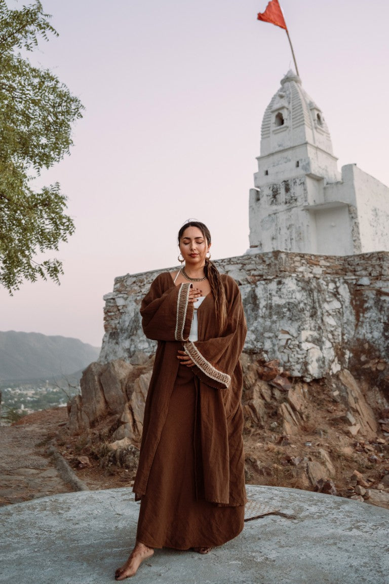 De Kallari rok is een eerbetoon aan rauwe, organische schoonheid. Gemaakt van Earthloom katoen, belichaamt deze rok natuurlijke stroming, met zijn ademende, zachte textuur die zacht aanvoelt op de huid. Het opvallendste detail? Een prachtig geweven jute borduurrand die een vleugje rustieke elegantie toevoegt.