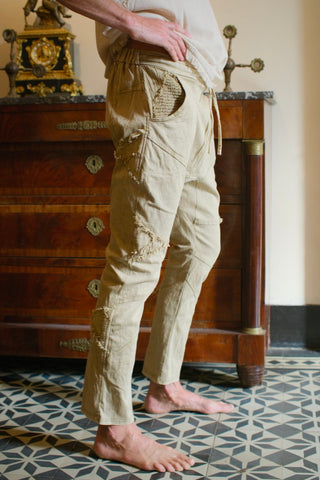 Omarm veelzijdigheid en traditie met het Oryn Vest , een volledig omkeerbaar ontwerp dat twee verschillende looks in één biedt. De ene kant toont de ruwe schoonheid van getextureerd Bugala-katoen , terwijl de andere kant een robuuste ruwe katoenen afwerking heeft, versierd met een prachtig geborduurde tribal rand . De grote capuchon , mouwloze snit en functionele zakken maken dit vest een perfect stuk om te dragen in laagjes, of het nu casual wordt gedragen of voor een ceremonie.