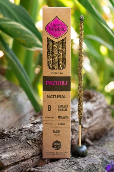 Immerse yourself in the intense and captivating fragrance of Sagrada Madre's artisan Patchouli incense.