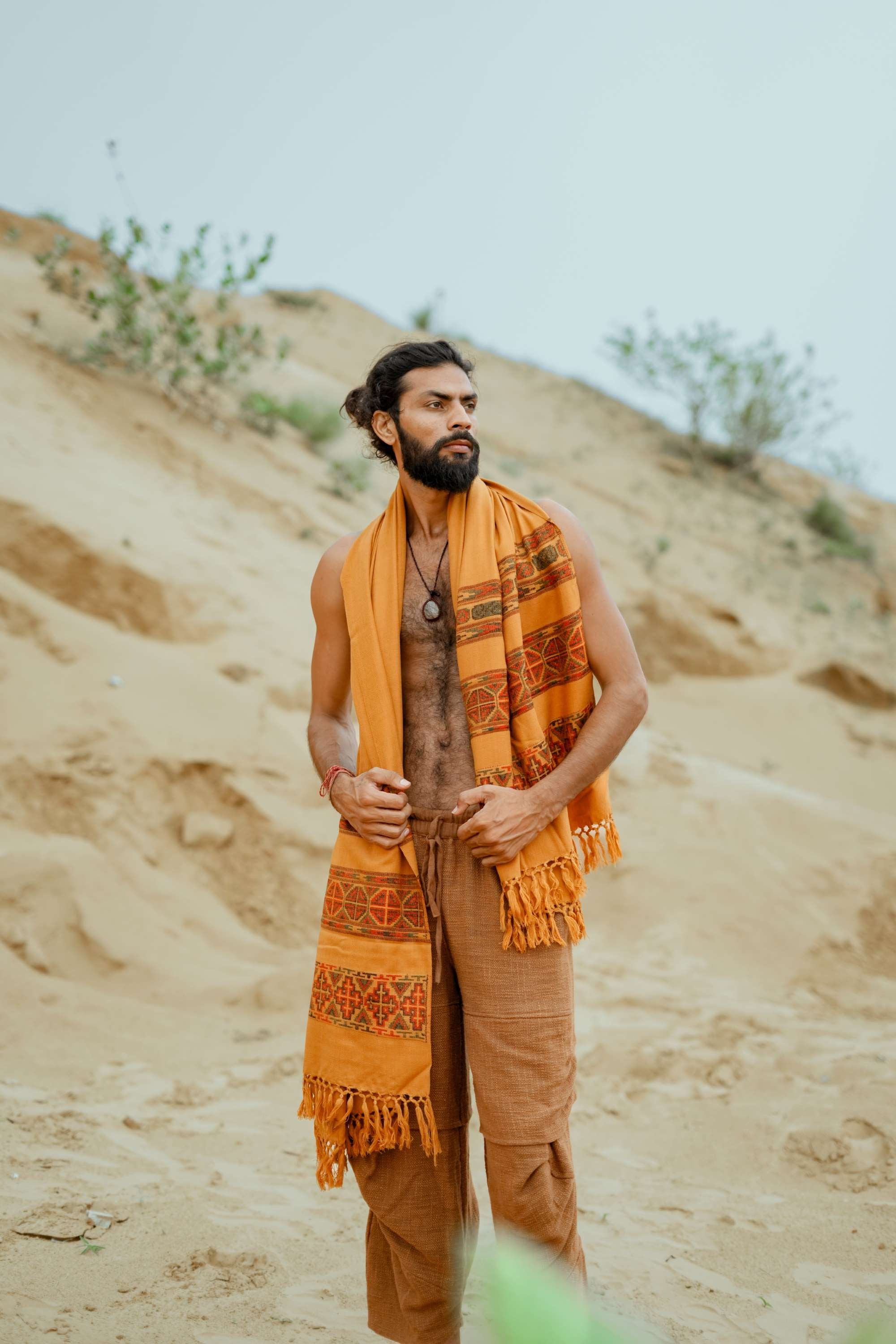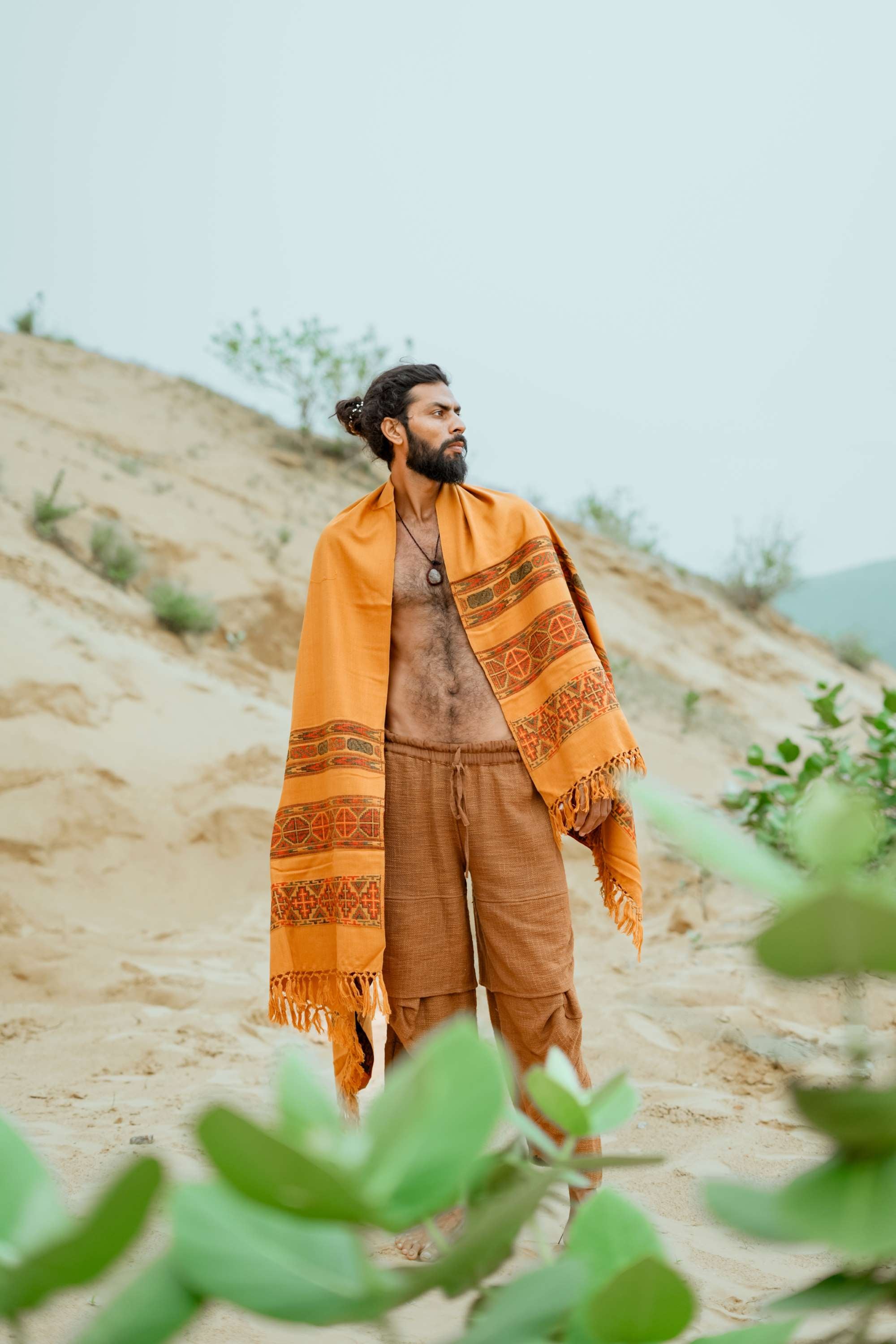 The Khullu shawl is a beautiful and practical wrap made from a blend of soft cotton and acrylic. The shawl is warm, comfortable, and gentle on the skin. The knitted border with geometric patterns gives the shawl a unique appearance. The shawl is large enough to keep you warm on cold days and can also be used as a scarf or headscarf.