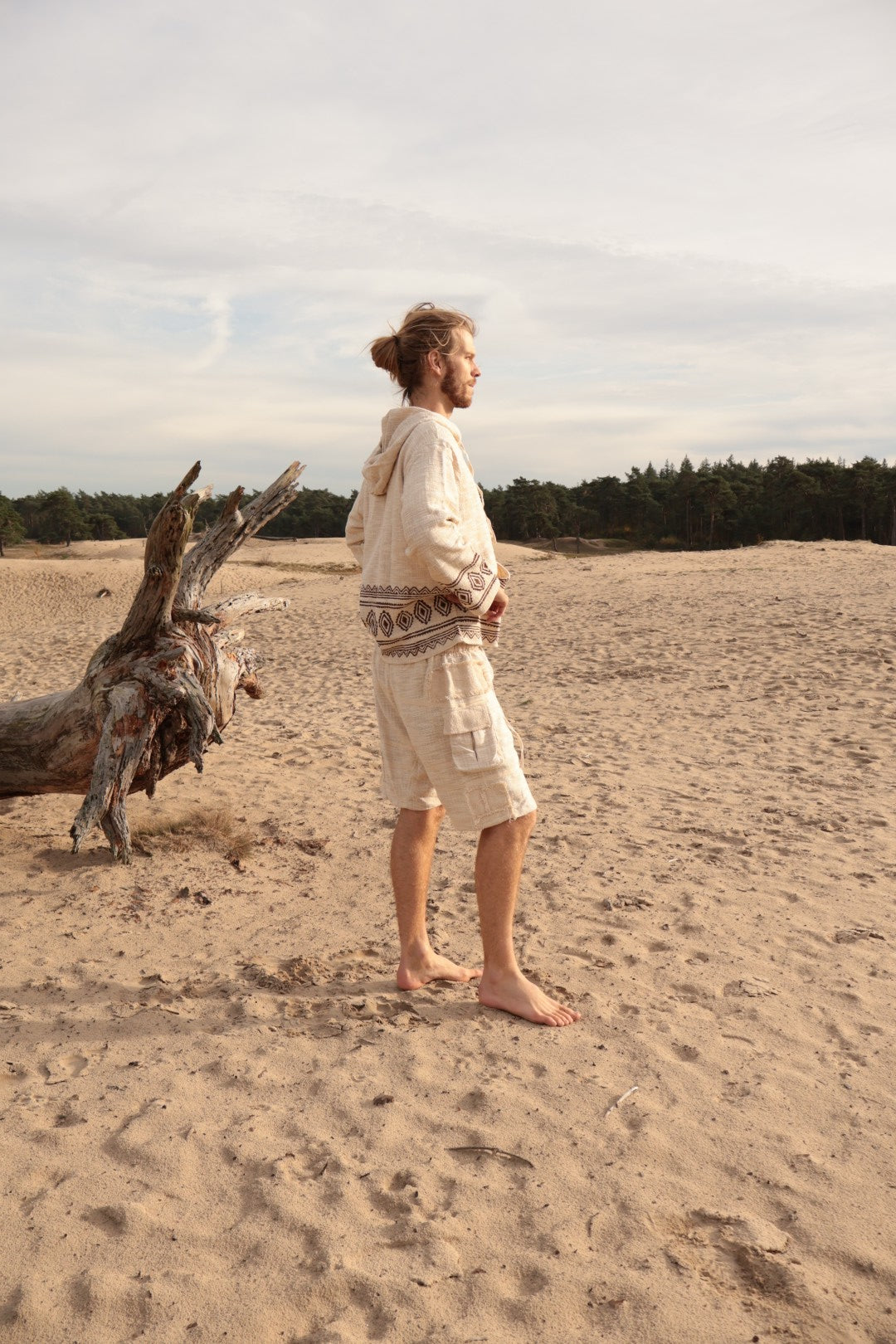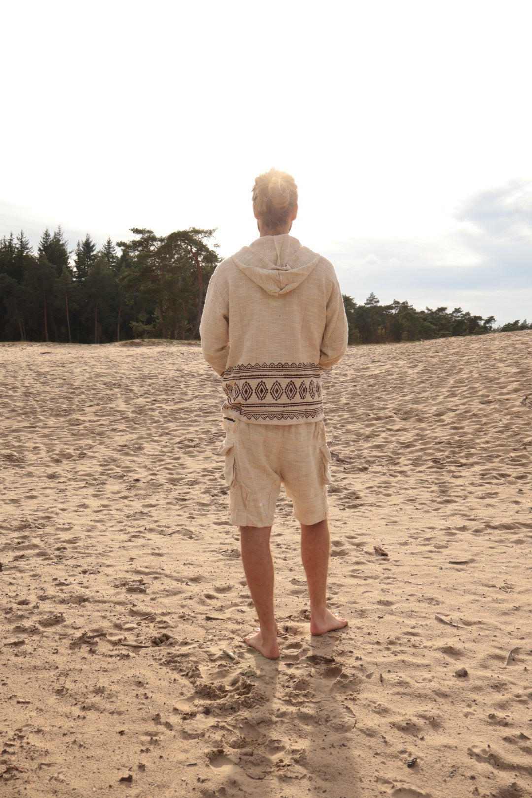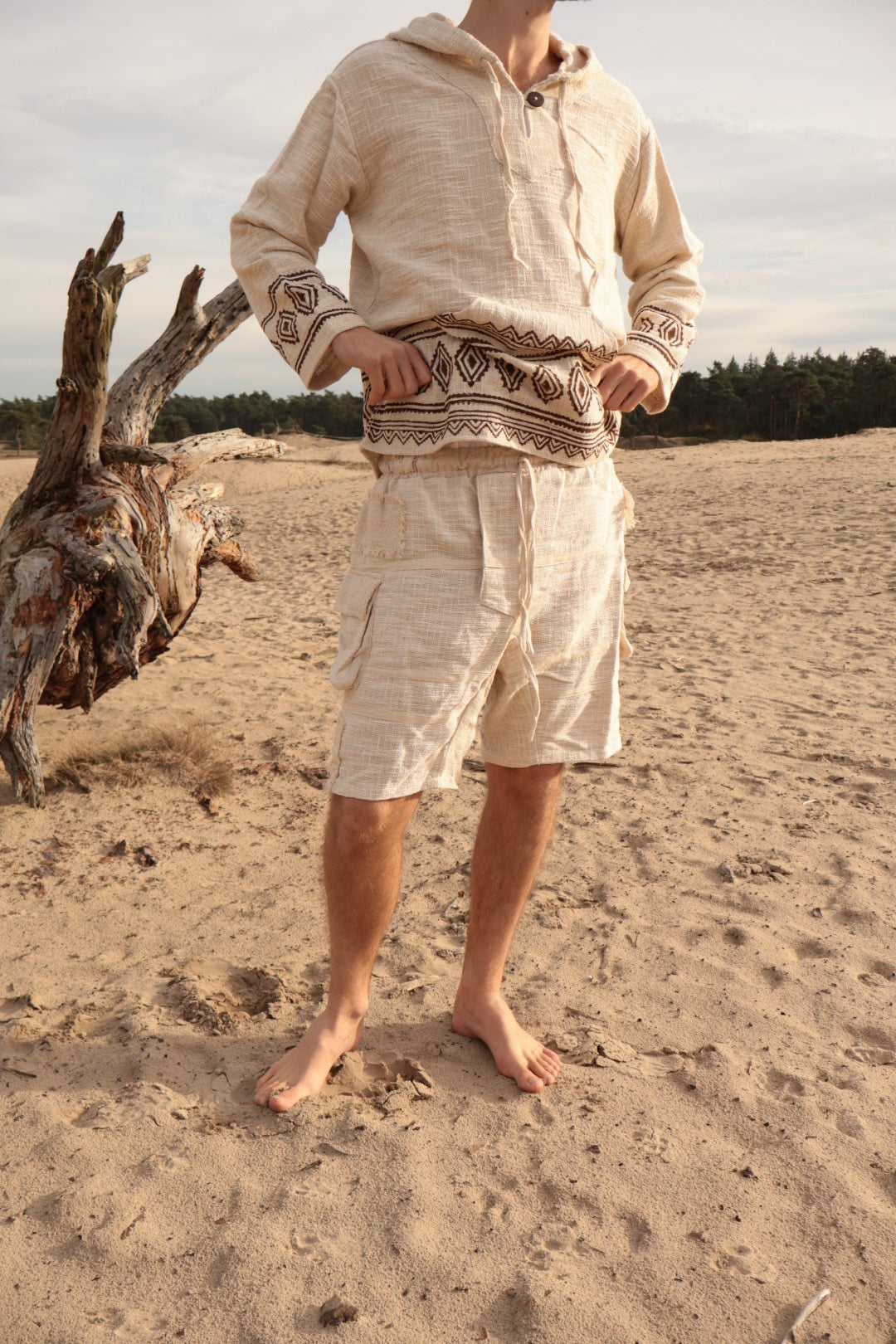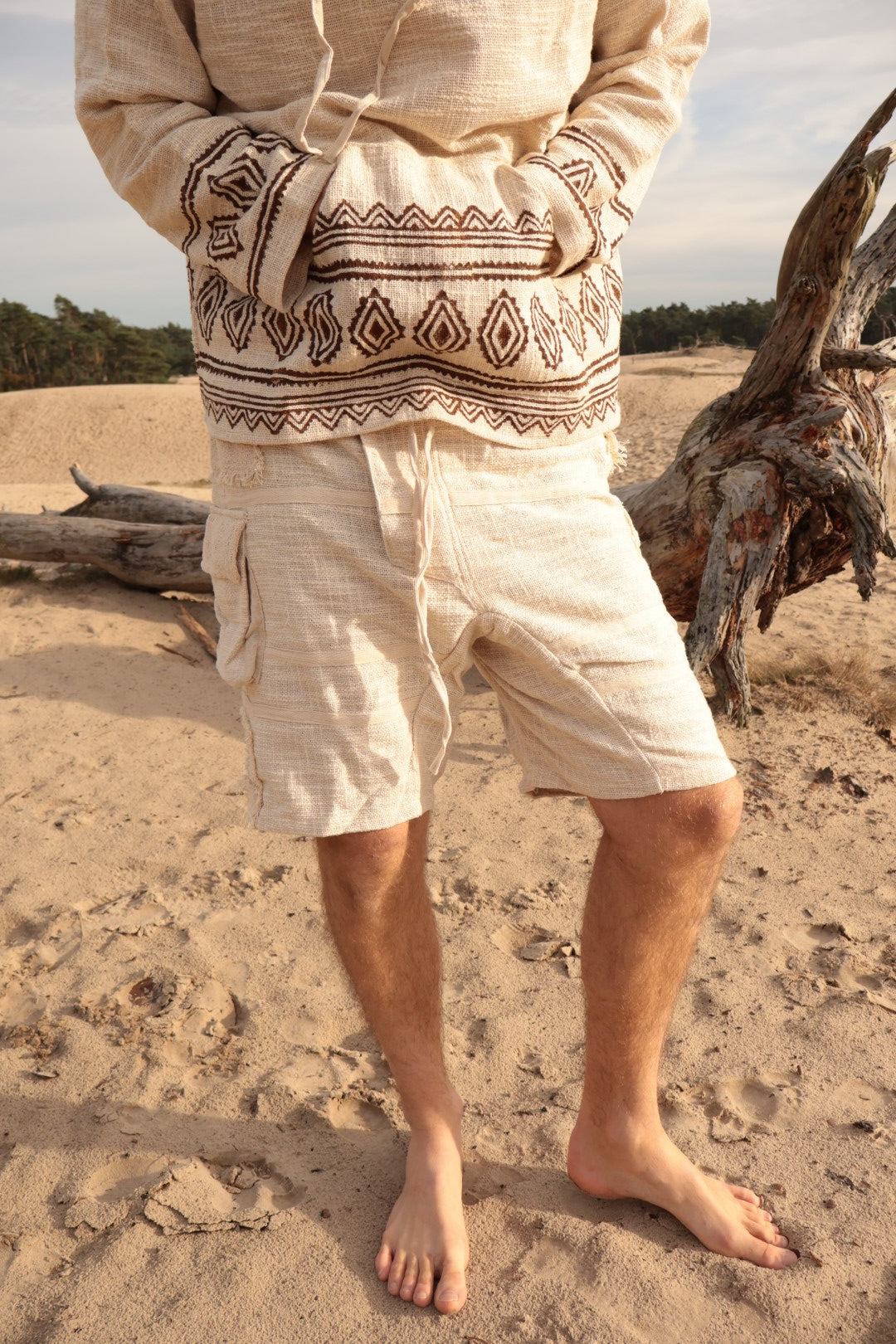 Deze Men’s Bugala Shorts zijn de perfecte mix van relaxed comfort en een stoere stijl. Gemaakt van duurzame bugala stof, vallen de shorts net boven de knie en bieden ze een moderne maar klassieke pasvorm. De elastische tailleband zorgt voor een flexibele, comfortabele pasvorm, terwijl de zijzakken praktisch zijn. Gedetailleerd met accenten van flower cotton, hebben deze shorts subtiele artistieke details, wat ze een unieke uitstraling geeft. Een geweldige keuze voor relaxte dagen, actieve avonturen of ontspannen zomeravonden.