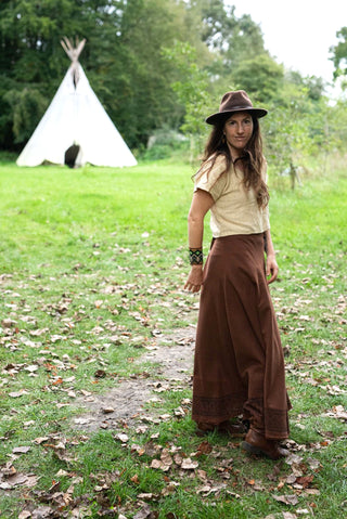 Deze prachtige wikkelbroek is gemaakt van Natuurlijk katoen en heeft een elegante pasvorm. De blockprint en overlappende zijsplit voegen een speelse touch toe, waardoor hij perfect is om in te dansen. Met zijn vloeiende stijl en comfortabele stof is deze broek ook ideaal voor de zomer.